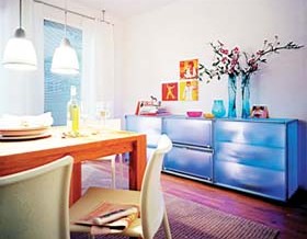 概要: 吃飯,對(duì)于現(xiàn)代人而言早就不再是單純?yōu)榱松?,在居家生活中,用餐已?jīng)成為享受人生的重要一環(huán)。既然如此,如果還是一家人緊緊圍坐在一張大圓桌旁,在單調(diào)的日光燈下“湊合”一日三餐,生活一定失色不少?! ‖F(xiàn)代家居中,餐廳正日益成為重要的活動(dòng)場(chǎng)所,布置好餐廳,既能創(chuàng)造一個(gè)舒適的就餐環(huán)境,還會(huì)使居室增色不少。