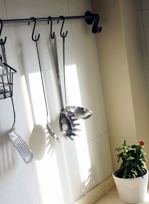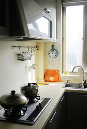 整個(gè)廚房,里面鴿灰、淡銀、淺白充斥。畢竟是玩弄水和火的地方,應(yīng)該顯得多些的穩(wěn)重。整個(gè)房間,設(shè)備很少,寂寞的只能在陽光下發(fā)呆。只因不經(jīng)常在家做飯。
