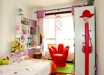 兒童房:顯然主人是想讓寶寶童年的美妙時光過得更加無拘無束。擺滿了毛絨玩具的書架,卡通的沙發(fā),柔軟的地毯,都在傳遞著濃濃的親子之情,亮麗的色彩也讓寶寶的生活充滿了陽光的味道。