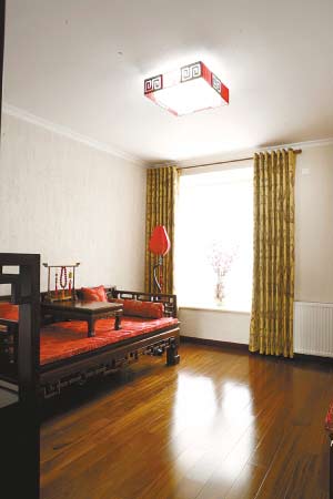 秋天容易讓人懷舊也容易讓人有點小情緒,而中式的裝飾未免又顯得太死板,兩者遇到一起或許會更加死氣沉沉。在這個房間中,深色的地板和金色印花硬布窗簾是最主要的大色塊,卻難免顯得壓抑和沉悶。還有那硬邦邦的中式家具,盡管窗外的秋風(fēng)漸涼,但是在這里卻絲毫感覺不到明快和溫暖的氛圍。