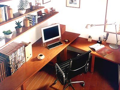 書房是陶冶情操、修身養(yǎng)性的幽谷,一般陳設(shè)有寫字臺(tái)、電腦操作臺(tái)、書柜、坐椅等。寫字臺(tái)和坐椅形狀要精心設(shè)計(jì),做到坐姿合理舒適,操作方便自然。