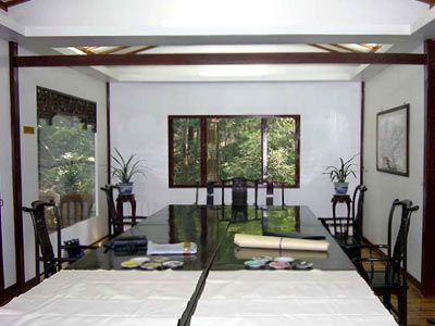 靠窗的書桌,要注意窗外十公尺以內(nèi)其它房屋射入的尖角,尖角距離越遠(yuǎn)影響越小,越近影響越大。寫字臺(tái)上的工作必需用品,也是書房的裝飾陳列品。如文房四寶的安置,筆筒、筆架的擺放,無(wú)不具有很強(qiáng)的觀賞價(jià)值且具有裝飾性。