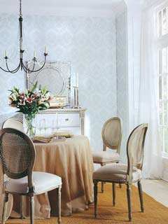 選圖案排列又可為居室營(yíng)造出不同的裝修效果。色彩濃艷、炫目的大花朵圖案往往在遠(yuǎn)處就能吸引人的視線,逼真的花紋似有呼之欲出的感覺,這樣的壁紙最適合鋪裝在格局單一的房間,以降低居室的拘束感。而一些具有規(guī)則排列的碎花圖案的壁紙則可以用作居室的背景,讓自己喜愛的沙發(fā)、椅子在這個(gè)點(diǎn)點(diǎn)星花的背景映襯下盡顯其特色。