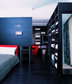 可以在臥室死角或者床頭背后設(shè)置這個(gè)衣帽間,開(kāi)放式的方便物品取放,考慮到保潔問(wèn)題,可以用布簾或竹簾當(dāng)門,拉籃選擇旋轉(zhuǎn)式的會(huì)更省地。