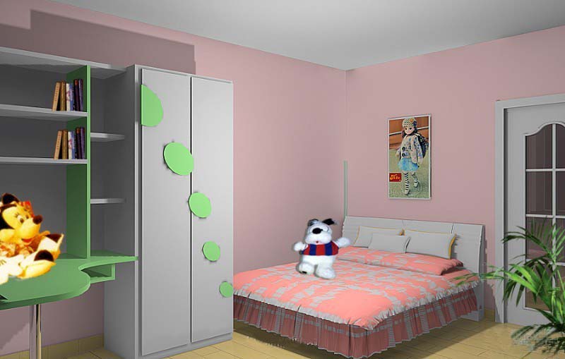 粉色床幔以及窗幔是改兒童房設(shè)計(jì)的亮點(diǎn),精致的鐵藝擱物架,讓小主人從小就養(yǎng)成整理的好習(xí)慣。