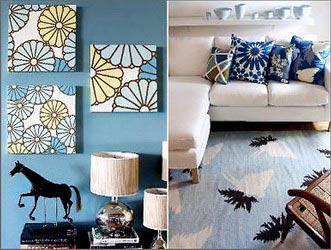 黃、藍(lán)、紫和綠:意大利、法國南部有成片的向日葵和薰衣草花田,一片片金黃、藍(lán)紫的彩色花卉與深綠色樹葉相映襯,呈現(xiàn)出明亮漂亮的顏色組合。因此,在家飾、織品上,很容易看到自然色彩的反映。