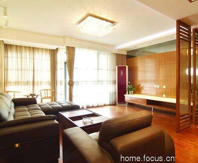 這個(gè)空間以黑、灰、米、白四色為基調(diào)。以現(xiàn)代、典雅、復(fù)古為主題,通過帶有古典韻味的屏風(fēng),把客廳巧妙地分隔成玄關(guān)和會客廳兩個(gè)實(shí)用空間,大面積的木制墻飾也巧妙地把兩者收納在一個(gè)大的空間內(nèi)。且大面積的灰鏡和帶有復(fù)古氣息的木墻飾也使客廳在穩(wěn)重之外多了一些華麗優(yōu)雅的現(xiàn)代感。木制電視墻將電視線路與視聽器全都收納其中,將雜亂無章化為無形,也是簡約的一種體現(xiàn)。