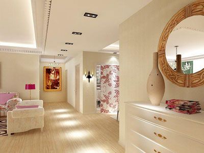 玄關(guān)也有一定的功能要法度。一般天花不宜太高,吊頂部分應(yīng)相對(duì)低一些,高度尺寸應(yīng)該在2.5~2.57米和2.62~2.65米之間,或者是更高一點(diǎn)的2.7~2.76米的范圍,令家居高度相對(duì)有錯(cuò)落變化;吊頂中心位置可嵌入筒燈,讓玄關(guān)明亮起來。玄關(guān)正立面也可以鑲嵌一面鏡子,出入門時(shí)可整理儀表;玄關(guān)的側(cè)立面應(yīng)該是鞋柜和掛衣鉤、柜櫥一類的陳設(shè),便于更衣?lián)Q鞋,也可能根據(jù)實(shí)地情況和家庭需要設(shè)計(jì)其他形式的壁櫥或家具。