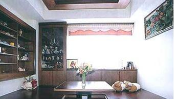 日式客廳的一個重要特點是它的自然性,它常以自然界的材料作為裝飾材料。因此,他在裝飾中采用了木、竹、樹皮、草、泥土、石等材質,充分展示其天然的材質之美,木造部分只單純地刨出木料的本色,再以鍍金或銅的用具加以裝飾,體現(xiàn)人與自然的融合。另外,日式客廳是以平淡節(jié)制、清雅脫俗為主,所以小客廳沒有多加繁瑣的裝飾,更注重實際的功能:中間一張日式矮桌,兩邊兩張無腿椅,一幅畫、一支花、一炷香,整個客廳講究一種“禪意”,讓人置身其中,體會到一種淡淡的喜悅.既作會客、休息室,又兼客房,而架空的地臺還是家中一大儲物地,可將各式雜物吸納入“地”,留出一個精簡的家。難怪有人稱和室是現(xiàn)代居室中“一室多用”的典范。