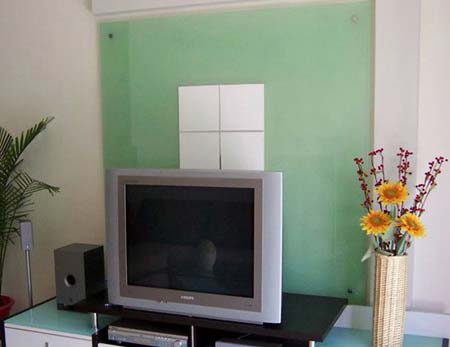 也有些消費(fèi)者愛用烤漆玻璃做背景墻,對于光線不太好的房間還有增強(qiáng)采光的作用。