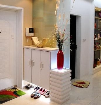 7、在玄關(guān)處擺放的家具要以不影響主人的出入為原則。如果居室面積偏小,可以利用低柜、鞋柜等家具擴大儲物空間。還可通過改裝家具來達到一舉兩得的效果,如把落地式家具改成懸掛的陳列架,或把低柜做成敞開式掛衣柜,增加實用性的同時又節(jié)省了空間。