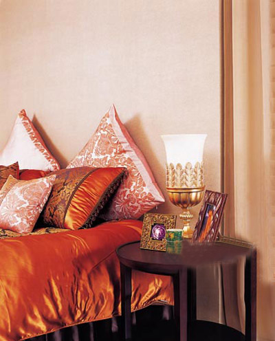 1、顯示成熟、穩(wěn)重的家居格調(diào),華麗感的金棕色、暗紅色布藝絕對是正確之選。圖案方面,選擇富貴的大花或有凸凹感的暗紋圖案,比較容易營造出典雅華貴的效果。