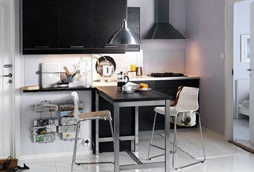 對于住房面積不大的居室,也可以將餐廳設(shè)在廚房、過道或者客廳。一般居室中廚房多外接陽臺,于是不少人將灶具移至陽臺,在廚房的一側(cè)定做一排櫥柜,余下的空間就可以作為簡單的餐廳了,有的家庭餐廳較小,可以在墻面適當(dāng)安裝鏡面,這在視覺上可以造成空間增大的感覺。要注意,餐廳與廚房則必須相鄰接近,這完全為了方便與實用考慮。