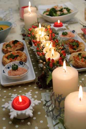 無論是燭光晚餐標(biāo)準(zhǔn)型燭臺(tái)蠟燭,還是色彩繽紛,形態(tài)萬千的時(shí)尚型擺設(shè)蠟燭都將會(huì)毫不例外地?fù)軇?dòng)你心底最浪漫的那根弦。建議選購粉色、藍(lán)色系列的蠟燭,至于形狀、大小、高低則按餐桌的不同進(jìn)行選擇。晶瑩剔透的燭臺(tái),造型別致的果盤,營造了一個(gè)簡潔現(xiàn)代的氣氛。燭光下,品著紅酒,吃著家人親手烹制的你最喜歡的食物,享受真正的二人世界吧!