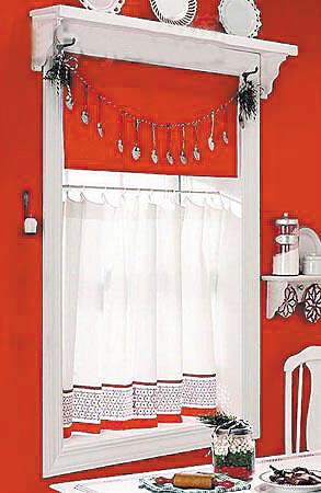 這樣的小東東掛在窗口不錯(cuò)吧?既然是餐廳的窗戶,就拿現(xiàn)成的餐具來(lái)裝飾它吧。湯勺可以釘在墻上做燭臺(tái),多余的不銹鋼小勺子可以鉆孔掛在窗口,美麗的餐盤也可以高高地展示在窗簾盒上方。