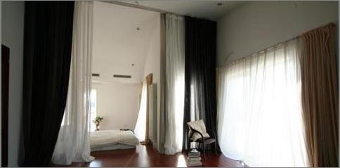 除了深紅色的木地板和木色櫥柜,白色是房間的主要色調(diào),窗簾、沙發(fā)以及白色的地面都拉近了人和自然的距離。玻璃茶幾,既通透明亮,又簡約美觀,富有現(xiàn)代感。主人從國外帶回的花瓶,晶瑩剔透,花瓶里的二枝紫色百合,更象輕盈的仙子飄臨人世。帶有生命氣息的綠色的植物點(diǎn)綴在各個角落,另室內(nèi)變得空靈而高雅。簡素的物體和天然之材所營造的室內(nèi)空間,使人的心境平和與安祥,超然物外。在這純自然、高簡素的色調(diào)中,展現(xiàn)出的是一種樸素、簡約之美。