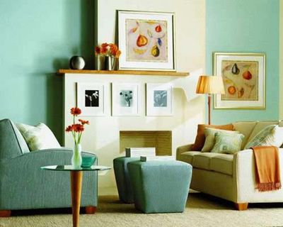 光是從玄關進入餐廳的角度來看,一個小小的用餐空間,就存在著火紅、天藍、粉橘……等三--四種顏色不等,而藍綠色的天花板,與墻面同一色調的畫作,是設計師有意讓視覺延伸與對應,使色彩表現(xiàn)出一種立體的趣味。