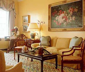 素凈的底色配以翩然起舞的蝴蝶,色彩絢麗的碎花;屋頂上精美的吊燈,桌子上夢(mèng)幻的燭臺(tái);拼貼特別的瓷磚,旋轉(zhuǎn)的造型鐵藝隔欄樓梯;有著彎曲輪廓的桌椅,帶弧度的抽屜銅把手,金色屈曲流轉(zhuǎn)的勾邊……每個(gè)細(xì)節(jié)都演繹著歐式家居的精致和奢華。