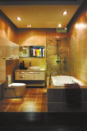 一般來(lái)說(shuō),大衛(wèi)浴空間面積至少應(yīng)該在10平米以上,有了這么大的衛(wèi)浴間,當(dāng)然應(yīng)該讓它的附加功能得到加強(qiáng),這時(shí)候的衛(wèi)浴間已經(jīng)不是單純意義上的洗澡、方便的所在了。 可以在浴室里擺上一些健身器材;或者將化妝室的功能搬入衛(wèi)浴間:在衛(wèi)浴間里添一只吊柜或壁柜,擺張嵌有洗臉槽的桃木制化妝柜,嵌入一面長(zhǎng)鏡或造一面鏡墻,添把搖椅或老式柳條椅,鋪張地毯,門(mén)上可做鏡面玻璃和毛玻璃,來(lái)反射更多的光,并且保有個(gè)人的隱私權(quán)。這些復(fù)合用途的浴室中間都能用屏風(fēng)、硬紙板或較高的植物做區(qū)隔。也可以設(shè)計(jì)圓形的豪華浴缸,或者讓它看起來(lái)像個(gè)溫泉泳池,泡泡蒸汽浴。