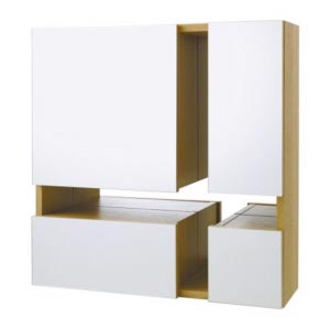 將鏡子和柜子結(jié)合起來(lái)是一個(gè)很好的利用空間的手段,也能更加有效地避免衛(wèi)浴空間顯得雜亂。這款鏡柜用仿佛積木似的組合,將每個(gè)儲(chǔ)藏空間都利用了起來(lái),既能避免一個(gè)大的柜體造成空間的浪費(fèi),又能保證鏡子的照射面積?,F(xiàn)代而簡(jiǎn)約的手法是衛(wèi)浴空間里最好的選擇,能夠起到點(diǎn)亮空間的作用。