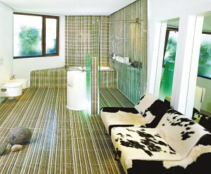 另外,在材料的使用上,各種新材料的加入,使衛(wèi)浴風(fēng)格更具多樣性,個(gè)性也更加鮮明。比如,金屬質(zhì)地的配件的加入,讓衛(wèi)生間增添了許多酷感和質(zhì)感。金屬的浴室把手、金屬的毛巾?xiàng)U、金屬的卷紙器、金屬的肥皂盒以及銅鋁復(fù)合的新型散熱器等等,這些細(xì)節(jié)的小小變化能讓衛(wèi)浴間整體變得時(shí)尚而有個(gè)性。另一方面,陶瓷制品也不再一統(tǒng)衛(wèi)浴空間的天下,石材、玻璃、木材等各種材料都成為陶瓷制品的替代產(chǎn)品。于是,玻璃面盆開(kāi)始受女性青睞;木制浴缸讓小資們心動(dòng);玻璃馬賽克更是在衛(wèi)生間里大行其道。