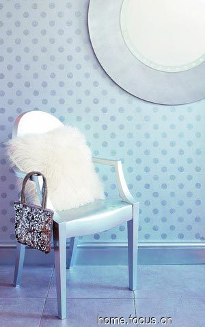 在灰色的墻面上畫上銀色的模板圖案,效果令人稱奇。金屬光澤涂料容易顯現(xiàn)墻面的瑕疵,因此要事先做好表面預(yù)處理,選用100%亞克力涂料是不錯的選擇,易于涂裝,干燥快。