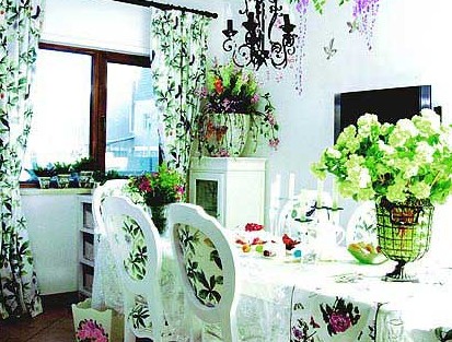 除綠色植物、花卉等能起到裝飾陽臺(tái)的作用外,陽臺(tái)側(cè)墻面、地面也是裝飾美化的重點(diǎn)。例如,可以整齊有致地在側(cè)墻上掛置富有裝飾韻味的陶瓷壁掛、掛盤等裝飾品,有的隔墻還可做成博古架的形式,以供放置裝飾器物。在光滑素雅的墻面上,也可掛置用柴、草、葦、棕、麻等材料做成的編織物。陽臺(tái)的地面可利用舊地毯或其他材料鋪飾,以增添行走時(shí)的舒適感。