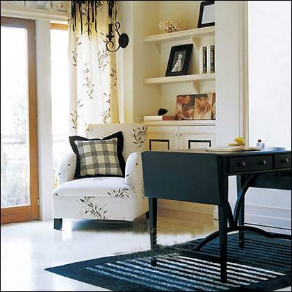小戶型家居空間本就非常狹小,而有些業(yè)主在在裝修時為了突顯室內(nèi)的區(qū)域感,往往會用不同材質(zhì)或顏色把各個空間地面分割開來,甚至天花板也與之搭配,適得其反,其實這只會造成視覺上的錯亂,甚至令本就狹小的空間看起來更加的擁擠。建議在地面裝飾顏色的選擇上以統(tǒng)一的明度稍高但純度稍低的色調(diào)為主,地面色調(diào)應(yīng)重于家具色調(diào),以免造成頭重腳輕的視覺誤區(qū)。另外還可以通過一些小點綴或線條穿插來打破原有的沉悶。