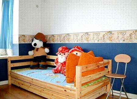 壁紙本身的色彩與圖案,視小朋友的性別、年齡與喜好而選擇,粉紅、粉紫系適合小女生,小男生則采用水藍(lán)色調(diào)的居多,家具的花色只要與壁紙同色系,就很容易搭配。