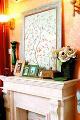 搭配沙發(fā)的色彩,茶幾、矮柜等也全是深色系的。有種渾然一體的感覺(jué)。它們的組合,構(gòu)成了默契與和諧。中間的米黃色 大理石壁爐仿佛成了一道緩沖,使不同的情緒得到自然的轉(zhuǎn)換。電視矮柜邊靠在墻角的一組中式桌椅,是文革中保留下來(lái)的,別致古樸,仿佛在述說(shuō)著往事。燙花的椅面上依然存留著舊日的余溫,縈久而彌香。10年前,她從祖母那里繼承了它們。古典與時(shí)尚相互參照,和諧共存。