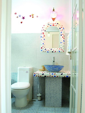 Lulu家兩個(gè)洗手間的關(guān)鍵詞都是:海洋、海洋!由于身處深圳這樣終年炎熱的地方,Lulu很想讓人一進(jìn)洗手間首先感覺(jué)到?jīng)鏊?