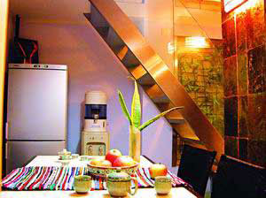 其實(shí)小亦有小的好處,如果是一個(gè)三口之家,一個(gè)六七平方米的門廳,沒(méi)有必要為求“大”而冒險(xiǎn)??梢园阉脑斐梢粋€(gè)很精致的餐廳,不要擺放過(guò)多的家具,但綠色植物必不可少,反而可能增添就餐時(shí)的融洽氛圍。