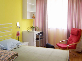再有,我用兩個相同顏色的櫸木床頭柜作為床的搭配。床頭柜有很深的抽屜,里面可以放一些必需品。柜子上面還可以放臺燈 穿衣鏡、掛衣鉤雖然是小東西,但其在居室中往往有不凡的效果。我用與床同質(zhì)感的穿衣鏡及掛衣鉤,在早上就能從容地穿上襯衣,忙而不亂地打理自己。