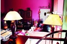 果然,隨著太陽不斷升高,這個房間越來越亮,原來暗淡的色調(diào)越來越明媚起來。到中午十二點半我們離開時,它已經(jīng)變成了深粉與粉墨綠調(diào)和而成的色調(diào),淡雅、溫馨,把一屋子色調(diào)暗淡的歐式家具襯托得恰到好處。