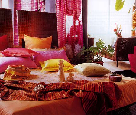 東南亞風(fēng)格有種說不清道不明的神秘調(diào)調(diào),它不僅和印度、泰國、印尼等東南亞國家有關(guān),還以東方文化中那種說不清道不明的神秘感混搭著一切元素。雖然三言兩語,我們無法將“東南亞風(fēng)格”完全描述清晰,但不少事物是緊密相連的,例如清涼的藤椅、泰絲抱枕、精致的木雕、造型逼真的佛手、嫵媚的紗幔等等,當(dāng)這一切和諧地兼容于一室時,我們便能準(zhǔn)確無誤地感受到那種東南亞的清雅、休閑的氣氛。
