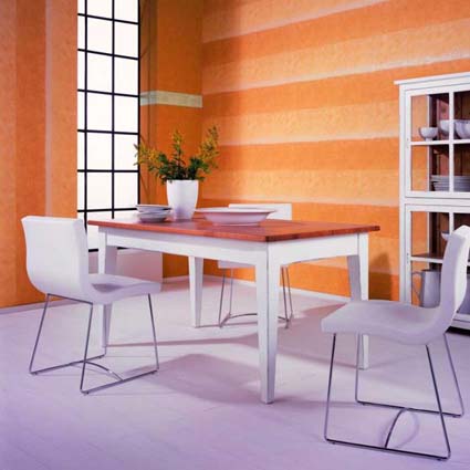 藍(lán)、淡黃及淡粉已經(jīng)過時,純黃、蘋果綠、海藍(lán)和深灰色,甚至大紅等色系運用較多。沉穩(wěn)而具有個性的咖啡色家具如組合柜、茶幾及餐桌椅等受到成功人士的推崇,大紅色和粉藕荷色則是沙發(fā)與床上用品的主打色調(diào)。木紋飾面的家具已退出主流,混油、防火板等材料裝飾以其色彩豐富而逐漸流行。