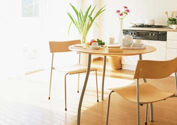 如在廚房中,主色應(yīng)選白色或淺藍色,這樣的冷色會使人覺得涼爽些。為了不使人在冷色中陷入沉悶,故應(yīng)以紅色、桔紅色為輔色才有利于使人進入較興奮狀態(tài),如在壁櫥門板上涂上這些顏色。再比如,陰面的房間及浴室應(yīng)以暖色為主,如米黃色、淡粉色的墻飾,而輔助色可選白色、淡藍色、果綠色等等,如家具或窗簾。