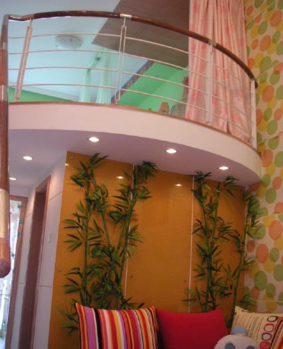 概要: 房子是女主人自己設(shè)計(jì),朋友幫忙裝修了,總造價(jià)是5萬元,裝成這樣的效果,絕對是超值。我的家是標(biāo)準(zhǔn)的單室廳,由于房間凈高有四米八,所以廚房及衛(wèi)生間上隔出了一間臥室,一進(jìn)門就可以看見客廳及衛(wèi)生間的墻體,所以種上了竹子增加一抹綠意同時(shí)也擋住了廁所的墻,橙色夾金絲的烤漆玻璃為客廳增加了一些暖意,意思沙發(fā)選用大紅色,也是增加了一種活潑的氣氛。