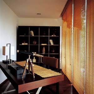 采用細(xì)竹片編織的窗簾既保證了遮擋視線的基本功能,同時(shí)又輕盈舒爽,讓窗外的明媚陽(yáng)光和婆娑樹(shù)影映入書(shū)房,強(qiáng)調(diào)了空間的文化氣息,也在一種低調(diào)中,呈現(xiàn)出了某種奢華。