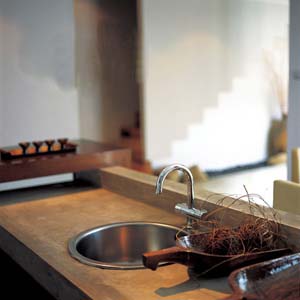 金屬和石材可以給沉穩(wěn)的傳統(tǒng)中式增添現(xiàn)代時尚感,而開放式的空間理念同樣適合新中式,從造型簡潔的金屬水斗到石材肌理的水臺,無一不改觀著我們對新中式的理解。