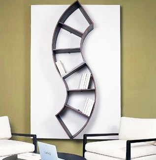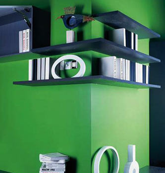 帶拐角的黑色木質(zhì)擱架 此擱架的最大優(yōu)點(diǎn)是兩面墻的空間都能被充分利用,承重效果良好,有點(diǎn)前衛(wèi)和另類。