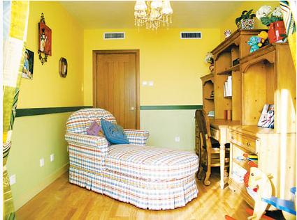 兒童房間的建材要選擇環(huán)保材料,但是,并不是使用了綠色材料,就等于進(jìn)行了綠色裝修,要知道,裝飾裝修材料的加工、施工、使用量,甚至溫度、濕度都會(huì)影響有害物質(zhì)的釋放。因此,綠色裝修要從四個(gè)環(huán)節(jié)把關(guān):綠色建材、綠色施工、檢測(cè)和治理。