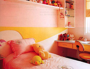 由于每個(gè)小孩的個(gè)性、喜好有所不同,不妨把兒童居室的墻面裝飾成藍(lán)天白云、綠樹花草等自然景觀,讓兒童在大自然(企業(yè)博客|專題)的懷抱里歡笑;各種色彩亮麗、趣味十足的卡通化了的家具、燈飾,對(duì)誘發(fā)兒童的想像力和創(chuàng)造力會(huì)大有好處。