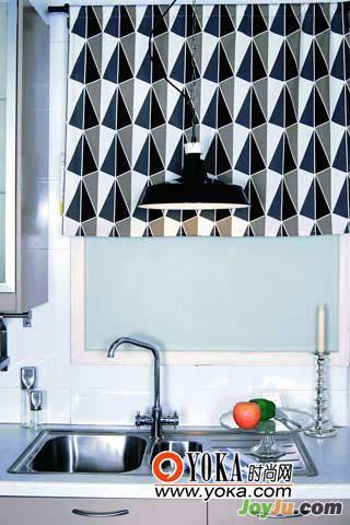 11.窗簾不一定都是長可曳地,根據實際需要,長度靈活調整,半簾在廚房就很實用。廚房對私密性的要求不高,因此,此處用了長度僅為60厘米左右的半簾,廚房一般都不是南北向的,所以光線不至于太強。半簾在有限度遮擋部分光線的同時,不至于遮蔽所有視線,在廚房勞作時還能看到一些窗外的景物,愉悅廚房心情。