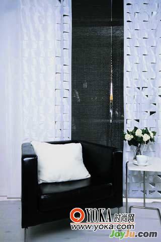 12.不同類型的裝飾簾組合運用,更有裝飾效果。此處為客廳跟陽臺過渡的部分,因為陽臺上另有窗簾,所以在遮光性上要求不高,只要能遮擋視線就可以。因此,采用兩層裝飾簾組合運用的設計方案。黑色裝飾簾為基礎色,跟沙發(fā)色彩協(xié)調一致,鏤空白色簾則為加層,提升裝飾性,同時也跟邊桌色彩呼應。
