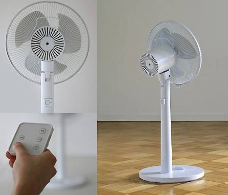這是Muji牌電風(fēng)扇,Industrial Facility設(shè)計(jì),一個(gè)可遙控的風(fēng)扇,高度可以從84cm升高到104cm以及速度、方向和頻度的調(diào)節(jié)。他們設(shè)計(jì)的出發(fā)點(diǎn)并不是從產(chǎn)品本身出發(fā),而是空間和風(fēng),一個(gè)類似飛機(jī)引擎的電機(jī)房子,風(fēng)扇的時(shí)間都是分配在開ON和關(guān)OFF上,設(shè)計(jì)表達(dá)出了簡潔和平衡。