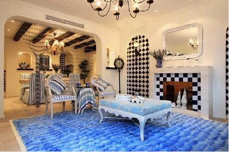 概要: 濃郁地中海特色淺淺的具有不同質(zhì)感與色相的白與藍(lán)色條紋,在家具、墻面、頂棚、梁柱等各個(gè)層面化解延伸,使整個(gè)居室充滿了視覺的清新感,呈現(xiàn)質(zhì)樸、唯美、慵懶的空間氣質(zhì)。鐵藝的立式座鐘整個(gè)空間唯美浪漫。 **厚實(shí)的木質(zhì)家具,蘭白相間的條紋布藝,優(yōu)美的吊頂弧線、典雅的吊燈似乎都在演繹著浪漫。獨(dú)特的設(shè)計(jì)讓空間得以擴(kuò)展與延伸,格調(diào)更具浪漫情懷。