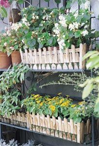 圍籬能讓原本零散的盆栽,收納成有整體感的花壇。最常見(jiàn)可用能任意調(diào)整圍形的籬笆、木樁,或者發(fā)揮創(chuàng)意,自行用木頭、砌磚圍起也行。另外折迭式的籬笆則可用來(lái)美化長(zhǎng)型花器。