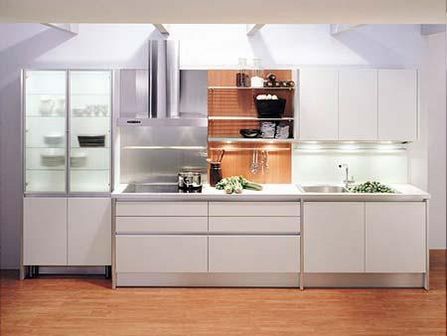 a、一般儲存、清洗、烹調(diào)這三大功能區(qū)應(yīng)設(shè)計成帶拐角的三角區(qū)。為方便使用,建議存放刀具、洗滌劑等以洗滌池為中心存放,在灶爐旁兩側(cè)留出足夠空間,便于放置餐具。對工作區(qū)的布置,應(yīng)根據(jù)廚房的大小、外形來設(shè)計。像廚房的拐角可沿墻做90°雙向展開的L型,方便各工序連續(xù)操作。