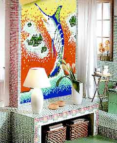 想讓墻面生色,利用瓷磚的拼貼就成為一幅生動(dòng)的作品,十分心曠神怡。
